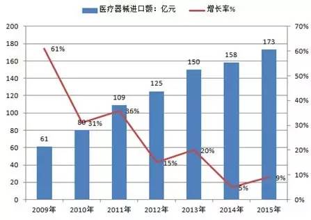 2009-2015年中国医疗器械进口额